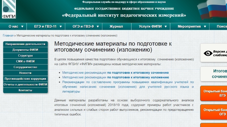 Федеральный институт педагогических измерений (ФИПИ) опубликовал результаты выборочного анализа итоговых сочинений 2018/2019 учебного года и методические рекомендации по подготовке к итоговому сочинению.