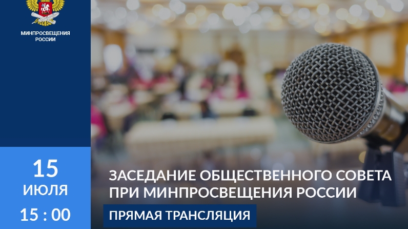 15 июля в 15:00 по московскому времени в Общественной палате Российской Федерации пройдёт первое заседание Общественного совета при Минпросвещения России. В нём примет участие Министр просвещения Российской Федерации Сергей Кравцов.